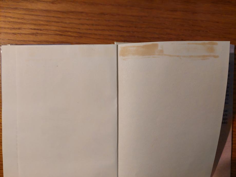 Na gornjim marginama dvije posljednje prazne stranice - smeđi trag (prikazano na fotografiji)