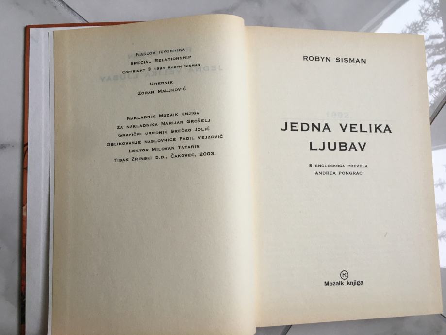 Robyn Sisman, JEDNA VELIKA LJUBAV