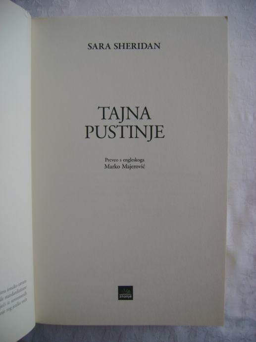 Sara Sheridan - Tajna pustinje - izdavač Znanje, Zagreb 2014. godine, 15 x 23 cm, meki uvez, 363 stranice.