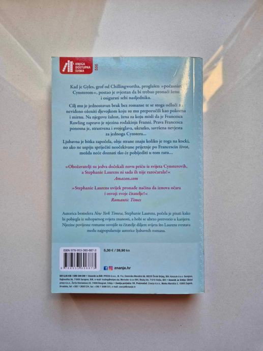 Kad je Gyles, grof od Chillingwortha, proglašen "počasnim Cynsterom", postao je svjestan da bi trebao pronaći ženu i osigurati sebi nasljednika. Cilj mu je jednostavan brak bez romanse te se stoga odluči na neviđeno oženiti djevojkom koju su mu preporučili kao pokornu i mirnu. Na njegovu žalost, žena za koju misli da je Francesca Rawling zapravo je njezina rođakinja Franni. Prava Francesca ponosna je, strastvena i svojeglava, ukratko, savršena nevjesta za jednoga Cynstera... Ljubavna je bitka započela, obje strane znaju koliko je toga na kocki, no ako ne uspiju spriječiti neočekivane prijetnje po Francescin život, možda neće doznati tko će pobijediti u tom ratu… "Obožavatelji su jedva dočekali novu priču iz svijeta Cynsterovih, a Stephanie Laurens ni sada ih nije razočarala!" Amazon.com "Stephanie Laurens uvijek pronađe načina da iznova očara i osvoji svoje čitatelje!" Romantic Times "Privlačni likovi i vruća kemija donose novi život poznatoj priči. Stephanie Laurens na svoj način protumačila je već poznatu formulu dogovorenog braka, te ju je učinila zabavnom i seksi!" Publishers Weekly "Senzualna romansa i divno pripovijedanje uz malo opasnosti i vruće strasti obećavaju čitateljima fantastičan doživljaj!" Kathe Robin "Divno je što saga o Cynsterovima nije završila s braćom i rođacima, već se proširila i na Cillingwortha. Njegova priča vrijedno je poglavlje u ovoj sagi o obitelji Cynster!" The Old Book Barn Gazette "Samo strast divan je primjer autoričine vještine!" Romance&Friends "Čista desetka! Učinite si uslugu i odmah otiđite po svoj primjerak ovog romana!" Romance Reviews Today Autorica bestselera New York Timesa, Stephanie Laurens, počela je pisati kako bi pobjegla iz suhoparnog svijeta znanosti, a hobi se ubrzo pretvorio u karijeru. Njezine povijesne romanse osvojile su čitatelje diljem svijeta što Laurens svrstava među najpopularnije autorice ljubavnih romana.
