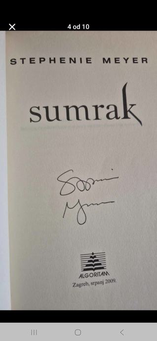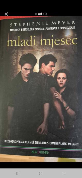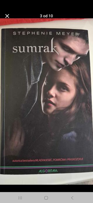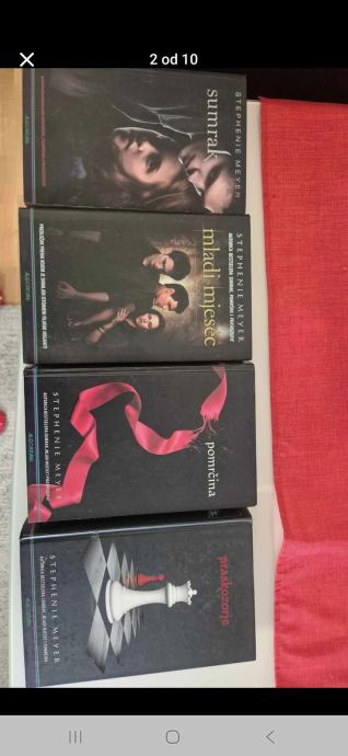 Sumrak meki uvez, ostale knjige tvrdi uvez. U odličnom stanju. Može se kupiti i zasebno osim u kompletu. Sumrak i Praskozorje je iz 2009. godine sedmo izdanje, Mladi mjesec iz 2009.g. deveto izdanje, Pomična iz 2010.g. deseto izdanje.