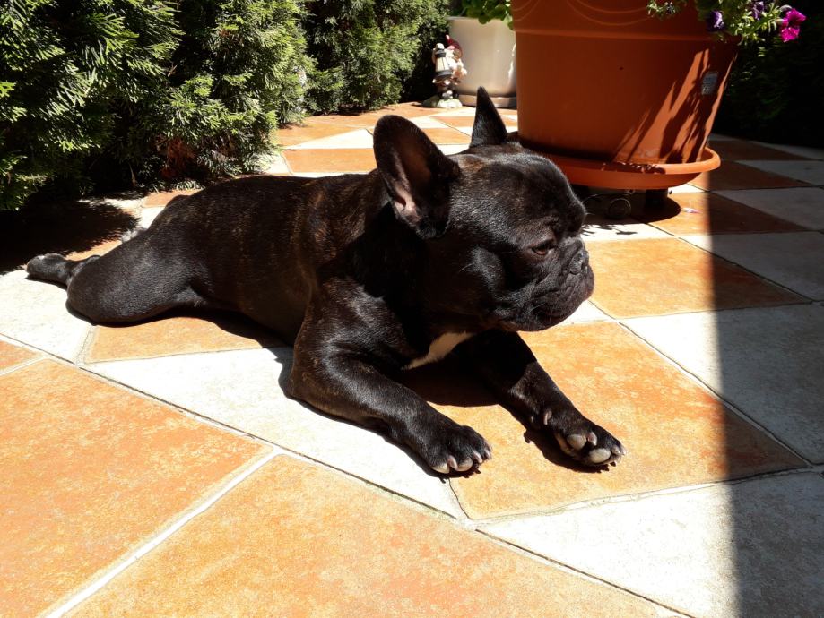 Francuski buldog,šampionskih roditelje,odlićno ocijenjen ,tigrasto crni sa bijelim prsima,jako lijep star 4 godine i,spreman za parenje, Arden Golden Idol