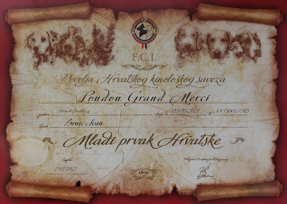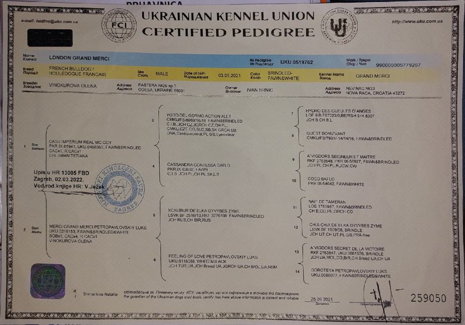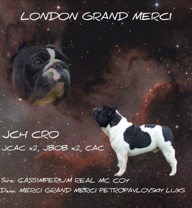 Mladi šampion Hrvatske u ljepoti London Grand Merci, francuski buldog šampionskog porijekla slobodan za parenje ženki s uzgojnom dozvolom.