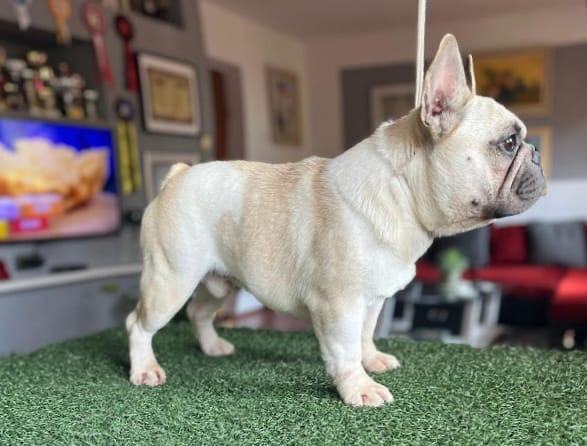 Mužjak odličnog karaktera, jakog kostura, skladno građen, odlične gornje linije, nadgrađen, pravilnog stava prednjih nogu, čvrstog došaplja, lijepih kutova zadnjih nogu i odlične donje linije, jake tipične muške glave i pravilnog zubala, odlično nošenih ušiju. Pas je slobodan u kretanju te ima tipičan hod buldoga .