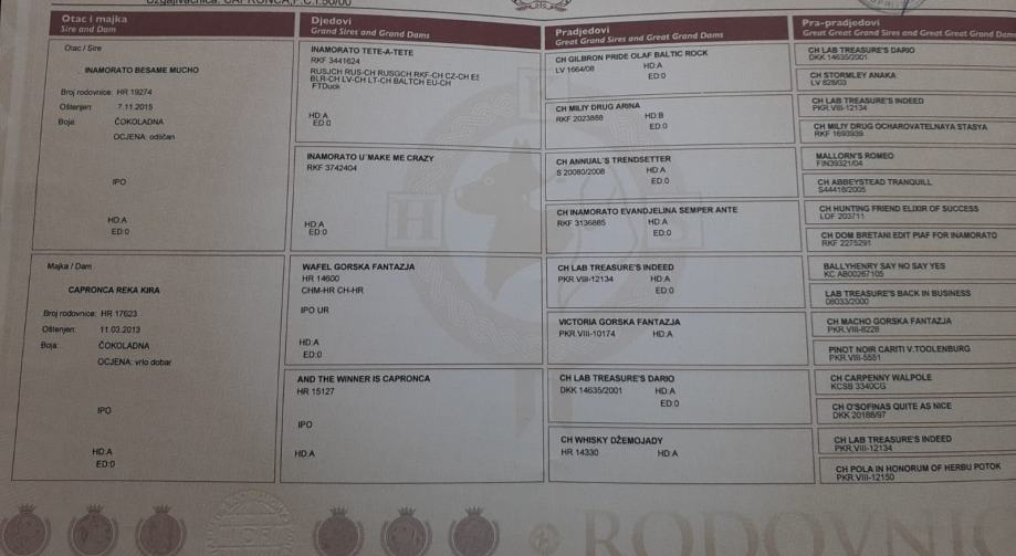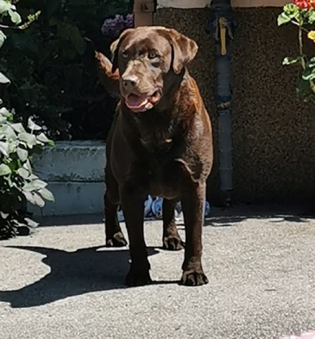 Čokoladni labrador Hugo Capronca sa uzgojnom dozvolom spreman za parenje.Star je 7 godina,u odličnoj kondiciji,poslušan i snažan.Svi njegovi potomci izrasli su u prave primjerke svoje pasmine.