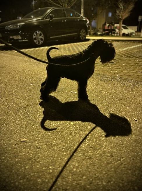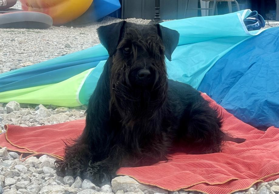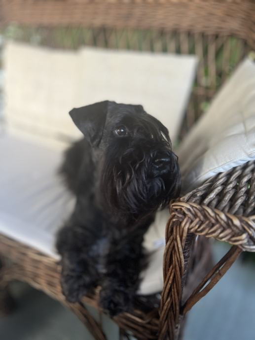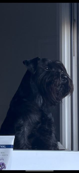 Pas je crni patuljasti šnaucer, rođen u lipnju 2021.godine, odličnih korijena, posjeduje rodovnik. Pas ima izrazito OŠTRU i kvalitetnu, pravu šnaucersku dlaku. Odlične je građe, mišićav te sportski aktivan. Napravili smo snimke kukova i laktova (rezultat HD A) te UZV srca (nalazi izvrsni). Također smo uradili i pregled patela, s izvrsnim rezultatima.