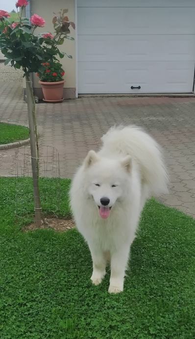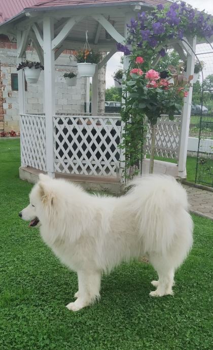 Čistokrvni Samojed bez papira ,umiljat,brižno njegovan poslušan ,voli djecu ,kukovi uredni zagriz pravilan medvjeđi tip,živi u velikom dvorištu za inf.zvati na broj 097 7885078