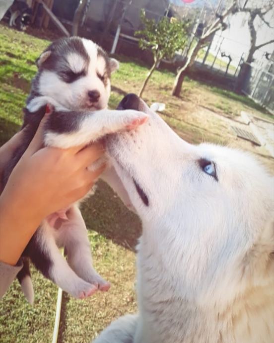 ČISTOKRVNI SIBIRSKI HASKI. Oba roditelja u mom vlasništvu. Veoma pametni i vrhunske građe psi. Štenci su rođeni 10.12.2018 god.. U leglu smo imali 6 cura i 4 dečka. Još je jedna prvobirana cura slobodna !!!