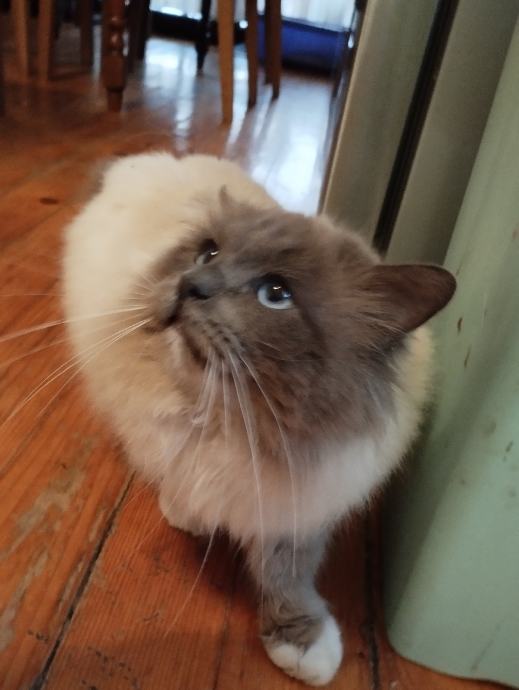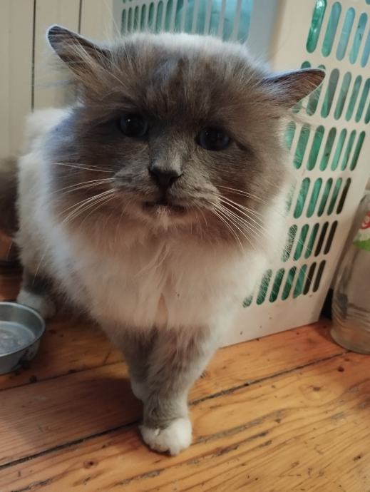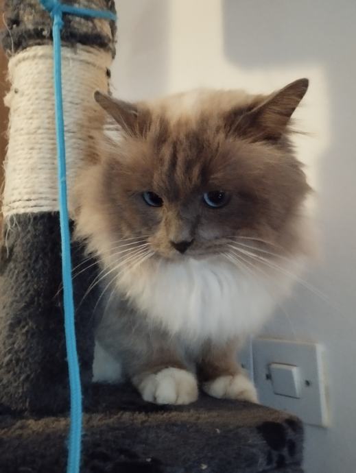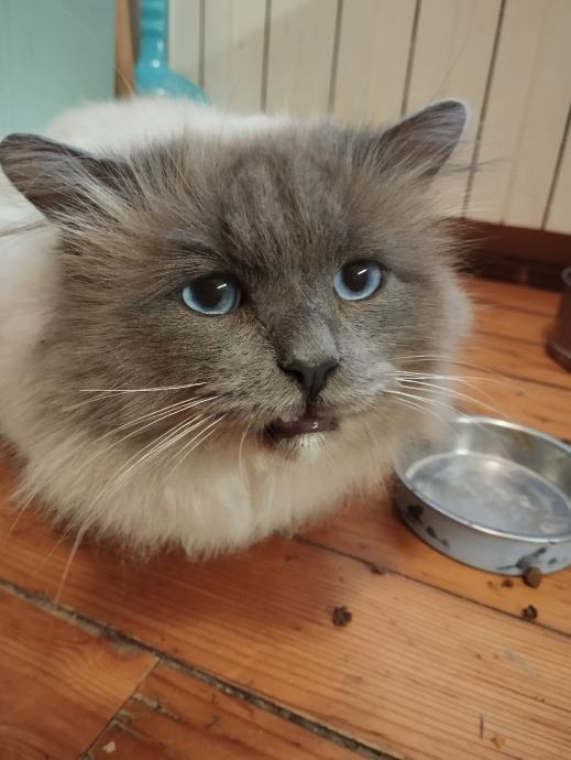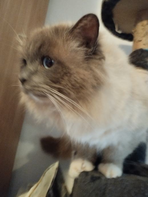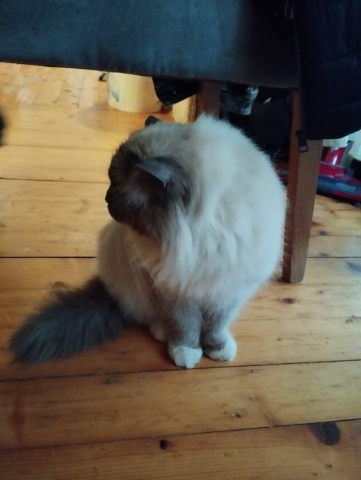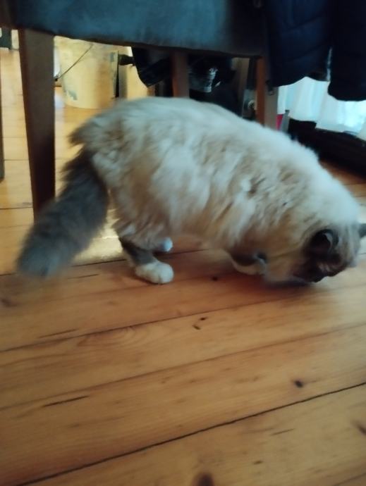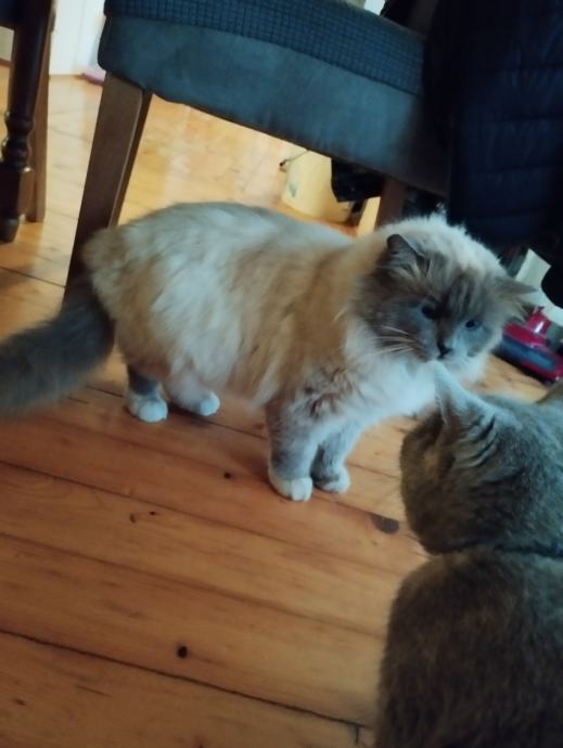 Mužjak Svete Birme dostupan za parenje u našem domu. Ima iza sebe puno uspješnih legla( naše mace i jedna maca koja nam dolazi u goste). Sveta Birma je mačka srednje veličine, poluduge svilenkaste dlake, plavih očiju i bijelih šapica( čarapica) karakterističnih za tu pasminu. Naknada je 300 eura.