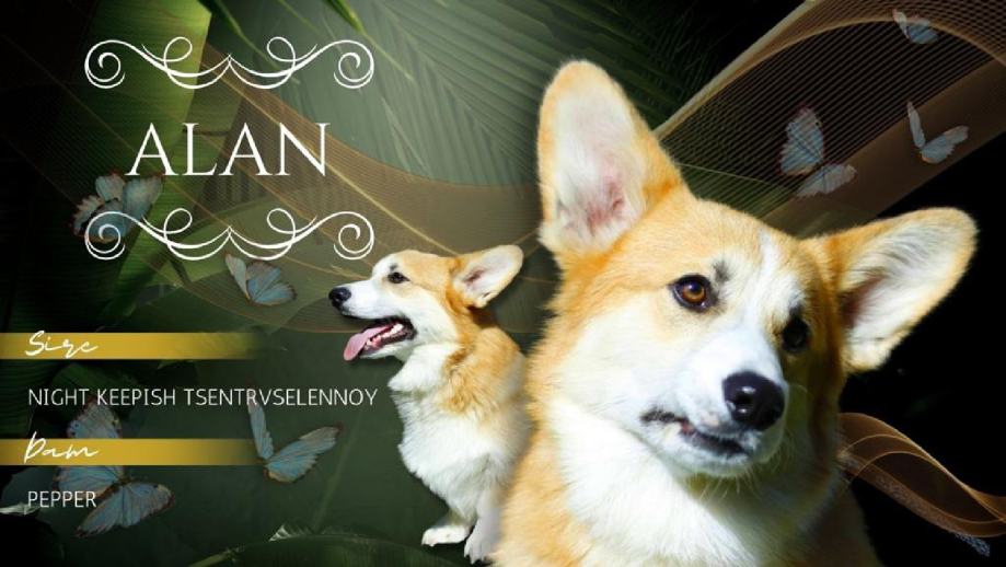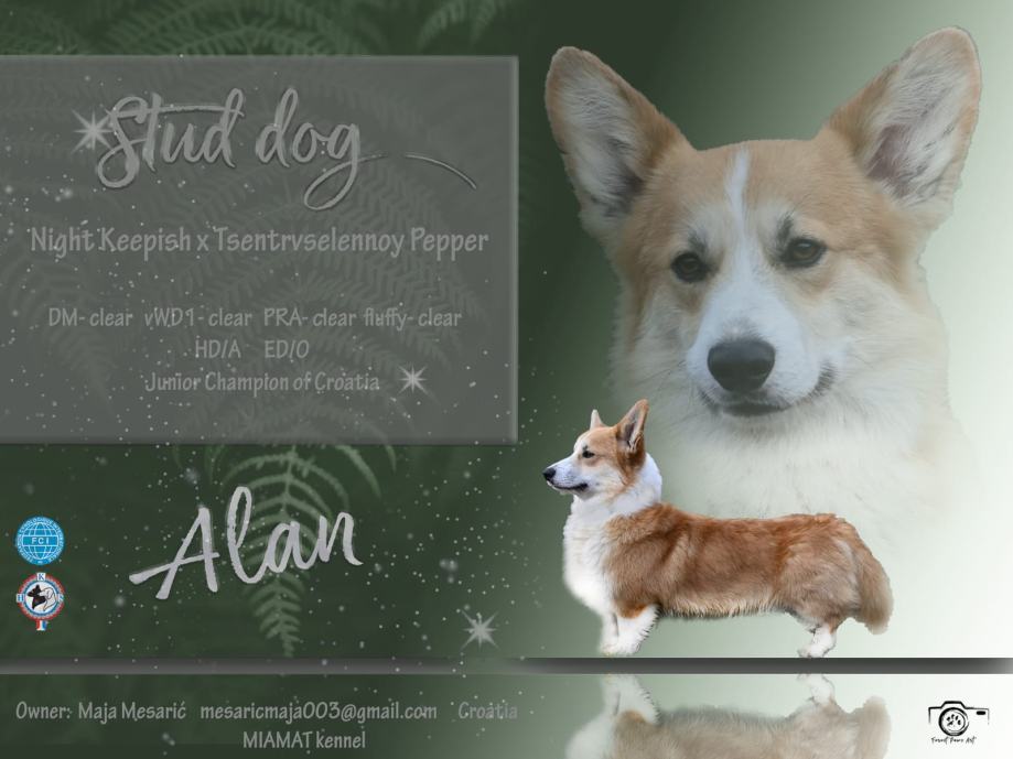 ALAN - mužjak lijepih proporcija,glava lijepog izraza,lijepog stava i hoda. Posjeduje rodovnik ,uzgojnu dozvolu i juniorski šampionat iskusan i daje predivne štence.