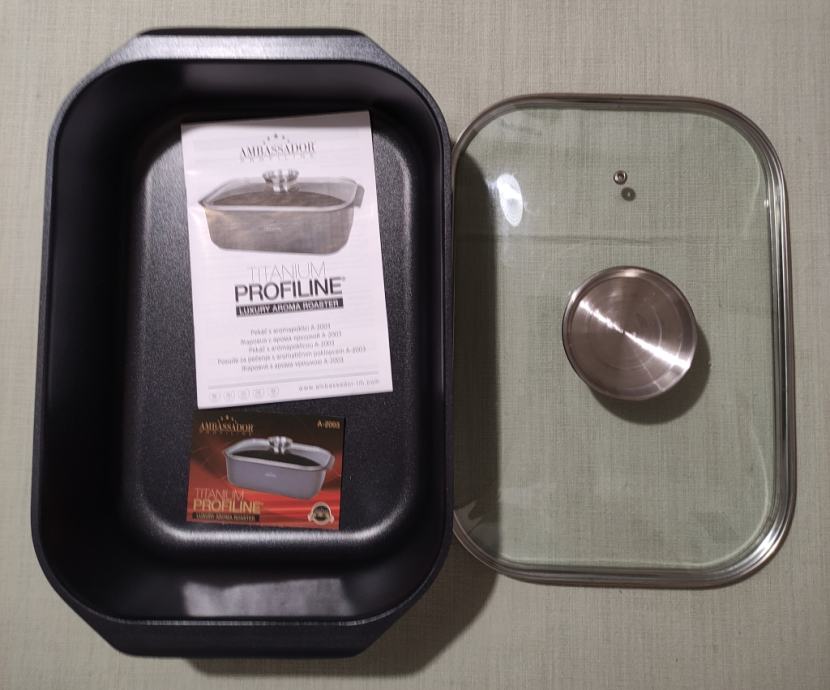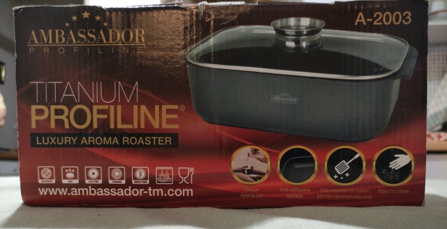 Prodaje se nekorišten pekač A-2003 iz Ambassador Profiline serije. Dobiven kao poklon, bez zaštitnog najlona. Dimenzije 40x25 cm, zapremnina 8 litara. Pogodan je za razne tipove štednjaka.