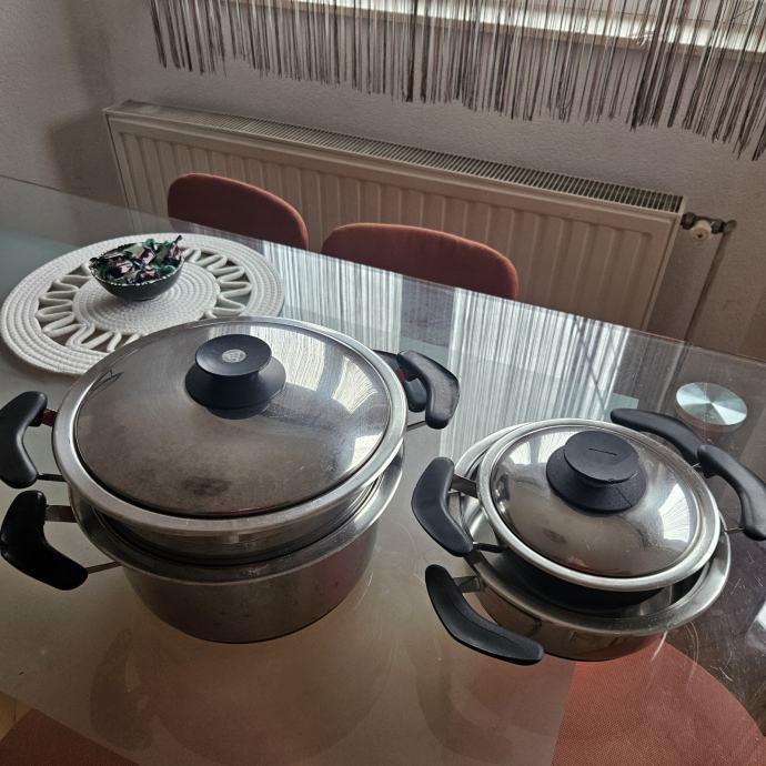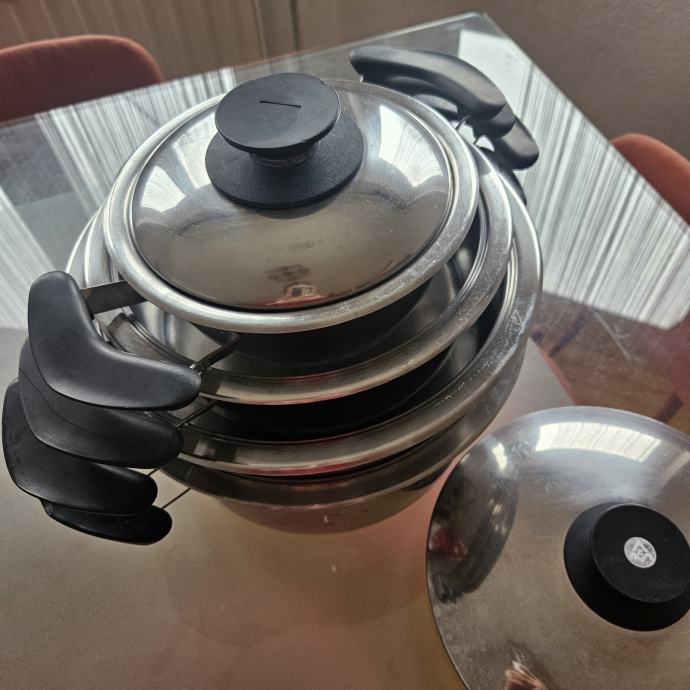 Prodajem set 4 lonca (veliki duboki, veliki plići, srednji i mali) te 2 poklopca.