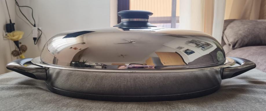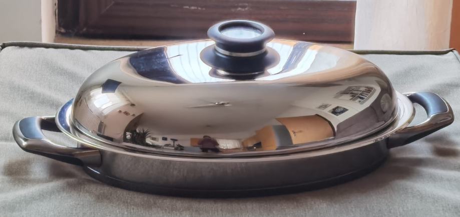 Original inox plitka posuda - sa debelim dnom i poklopcem sa indikatorom topline.