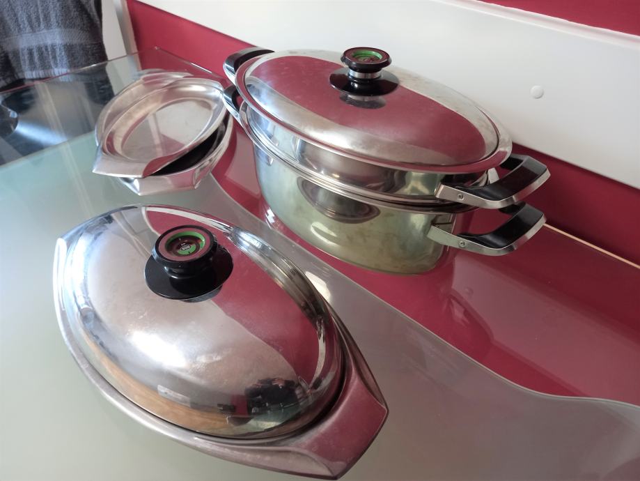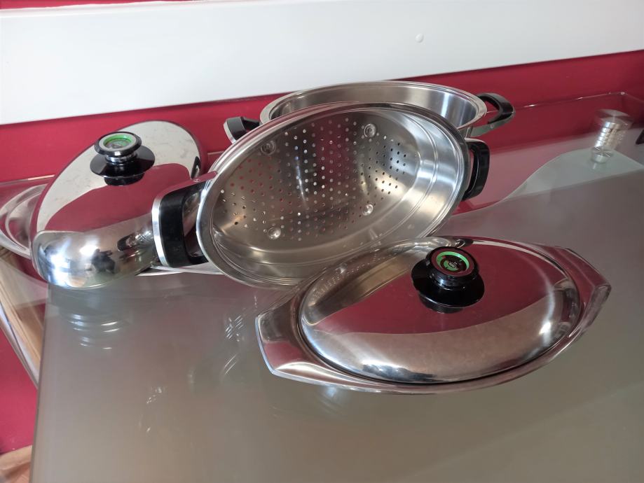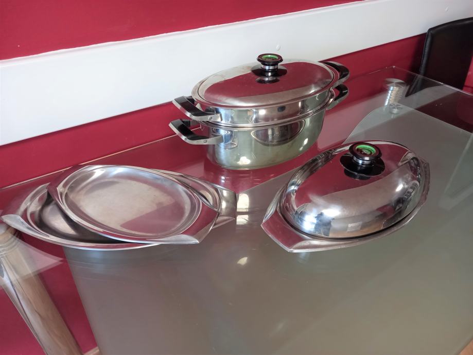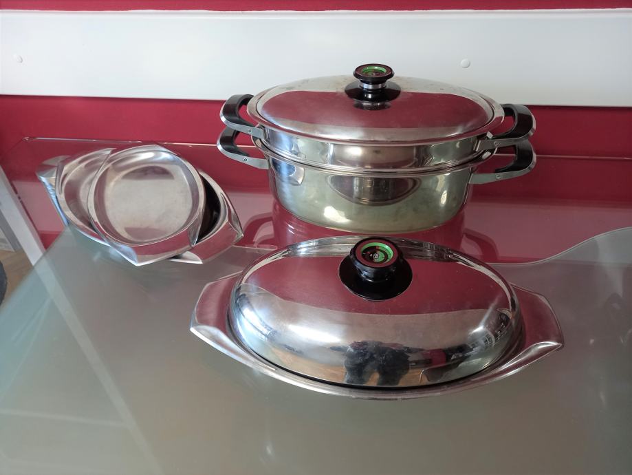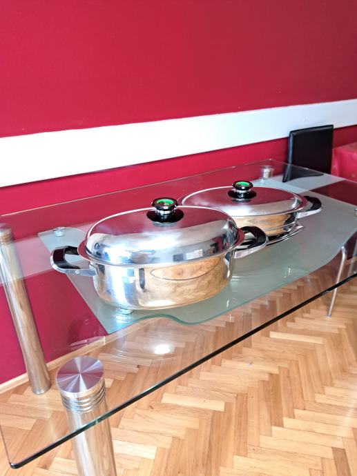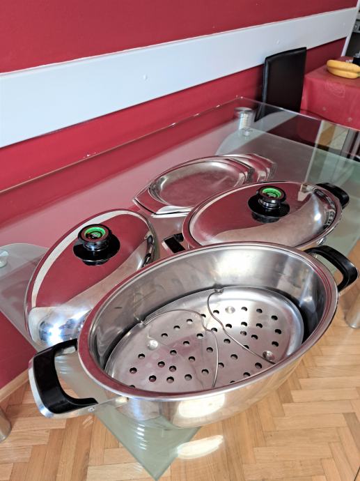 Predviđen za pečenje u pećnici (ribe, mesa...), a gornji dodatni ovalni lonac za pripremu povrća, ribe i dr. na pari, te kuhanje na ploči.