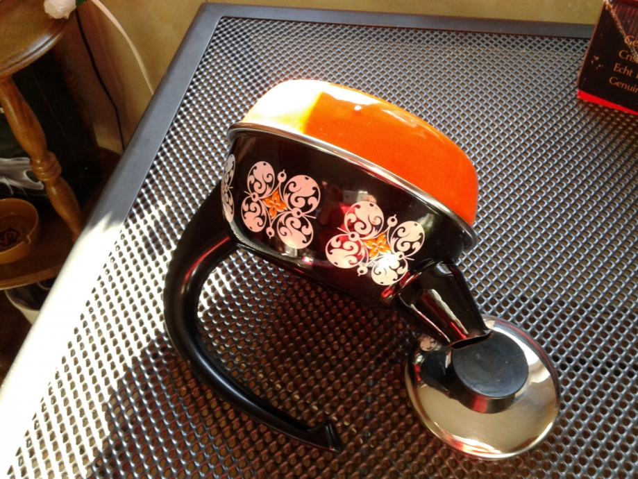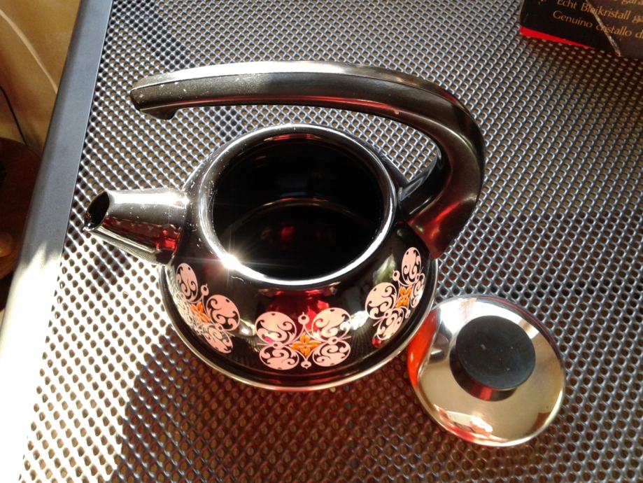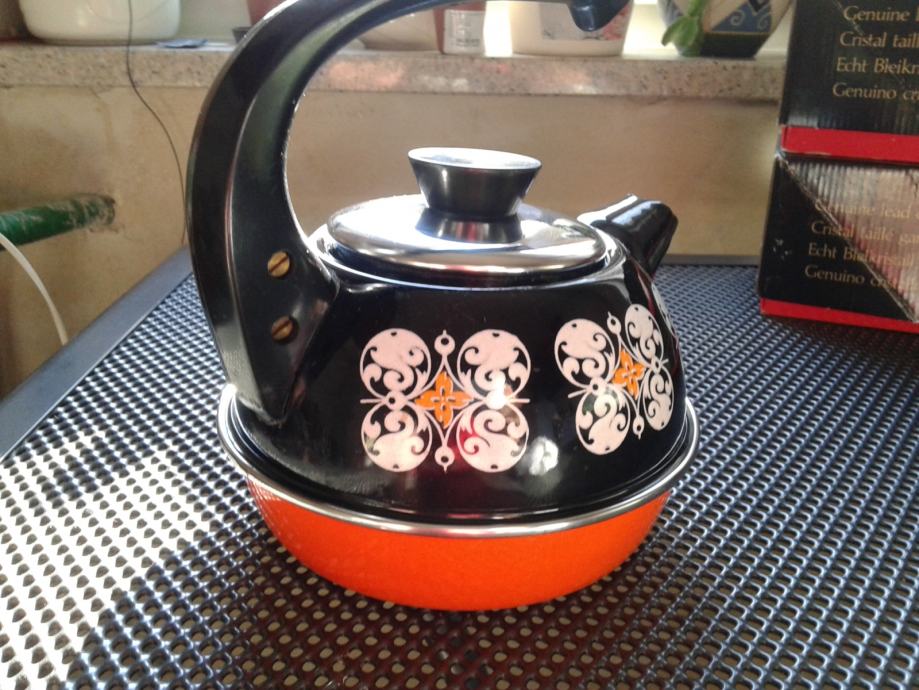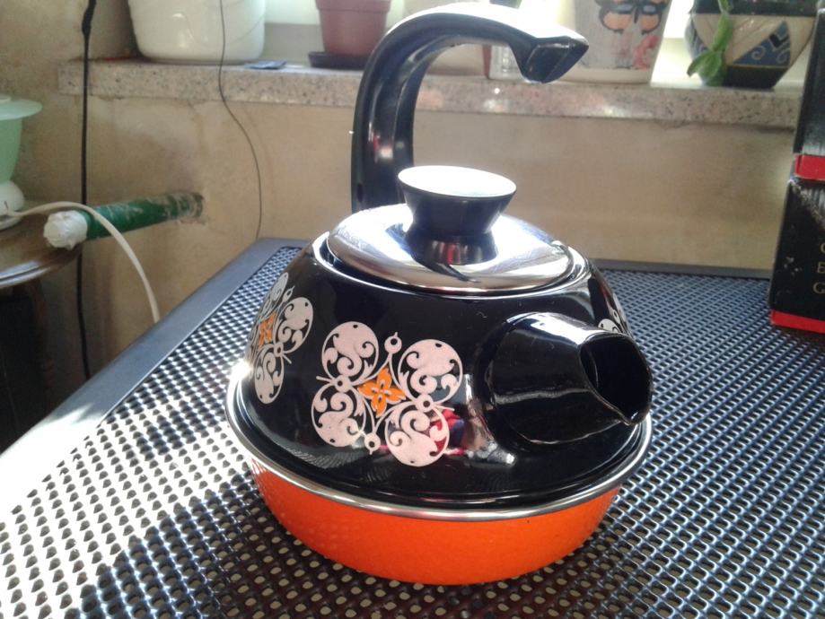 Emajlirani čajnik nov, crno/narančaste boje sa uzorkom, zapremnine 1,2 litre. Proizveden u Gorici. Uz čajnik, za bolji okus čaja, poklon Brita vrč .Dostava nije uključena u cijenu.