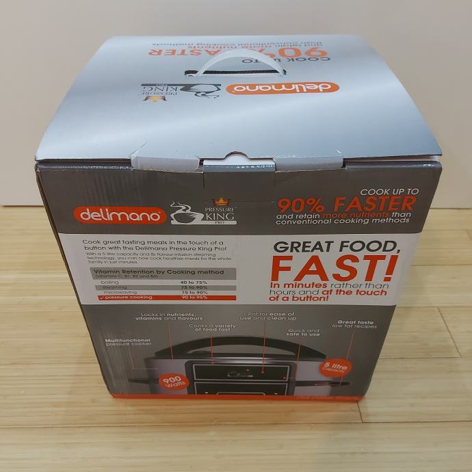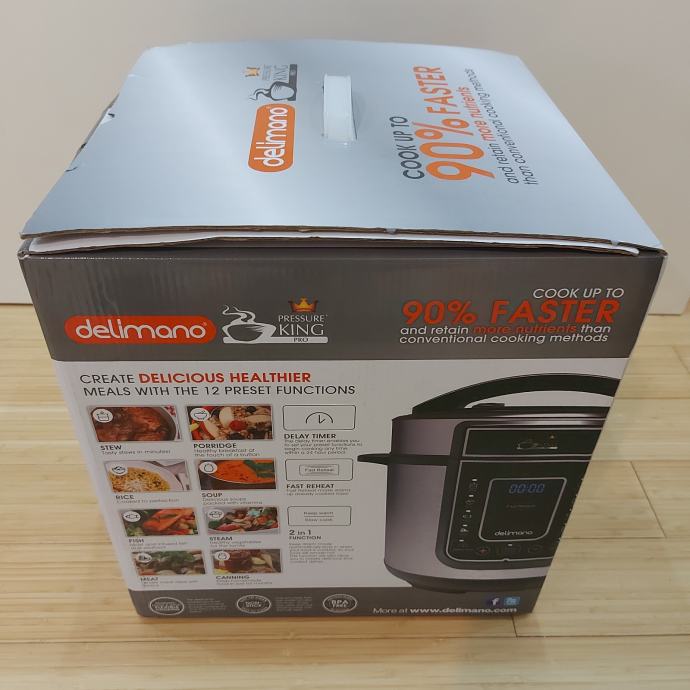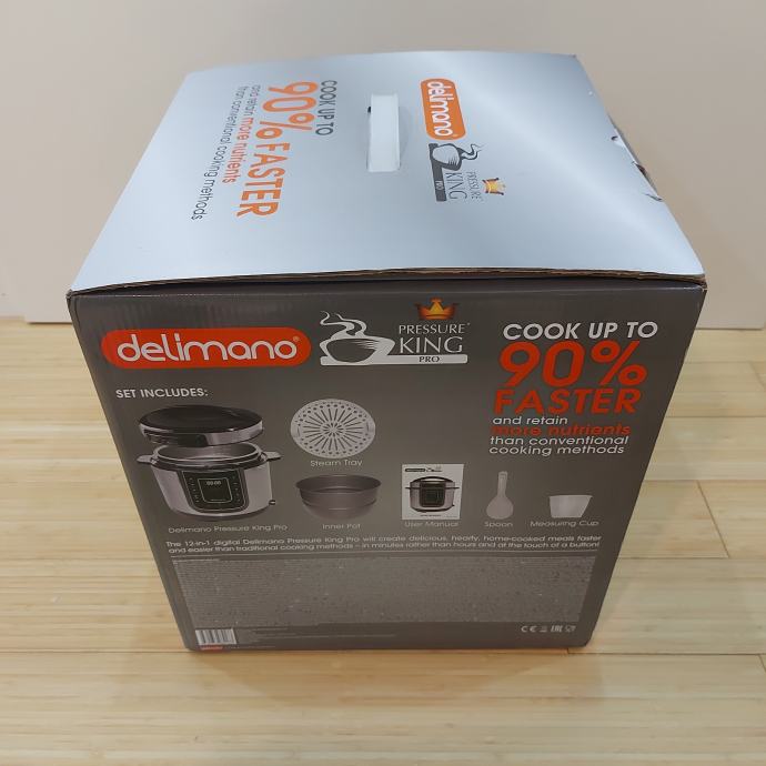 Delimano Pressure King Pro je digitalni višenamjenski ekspres lonac koji omogućuje brzo i jednostavno pripremanje raznih jela uz pomoć tehnologije kuhanja pod pritiskom.