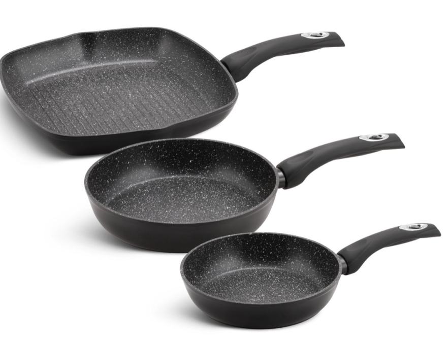 EDENBERG SET OD 3 VRHUNSKIH EKSTRA TEŠKIH TAVA OBLOŽENIH PRIRODNIM GRANITOM, ZA