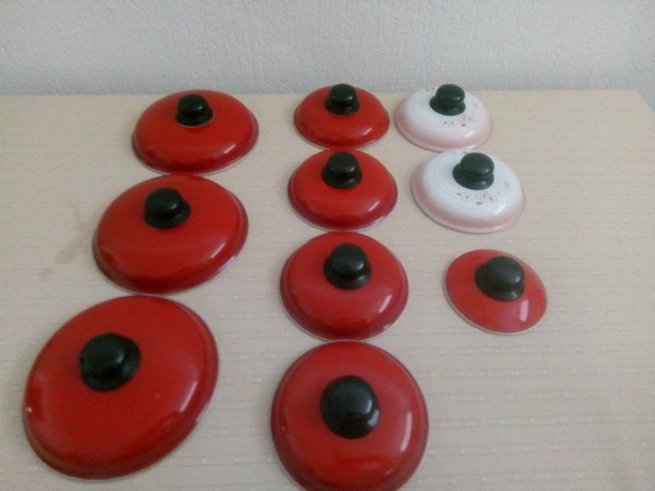 poklopci raznih dimenzija 17cm, 21cm, 13cm . svi poklopci imaju bakelitnu dršku. cijena 5eur/kom