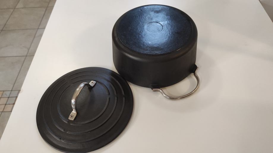 Ima emajlirano dno i može se koristiti na svim štednjacima te ići u pećnicu.