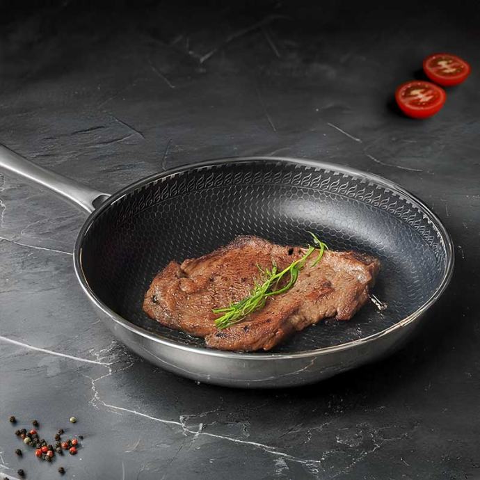 Zahvaljujući troslojnoj profesionalnoj strukturi Hexagon od nehrđajućeg čelika, toplina se ravnomjerno raspoređuje po cijeloj površini.