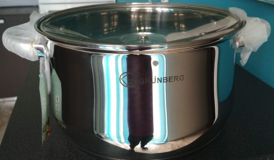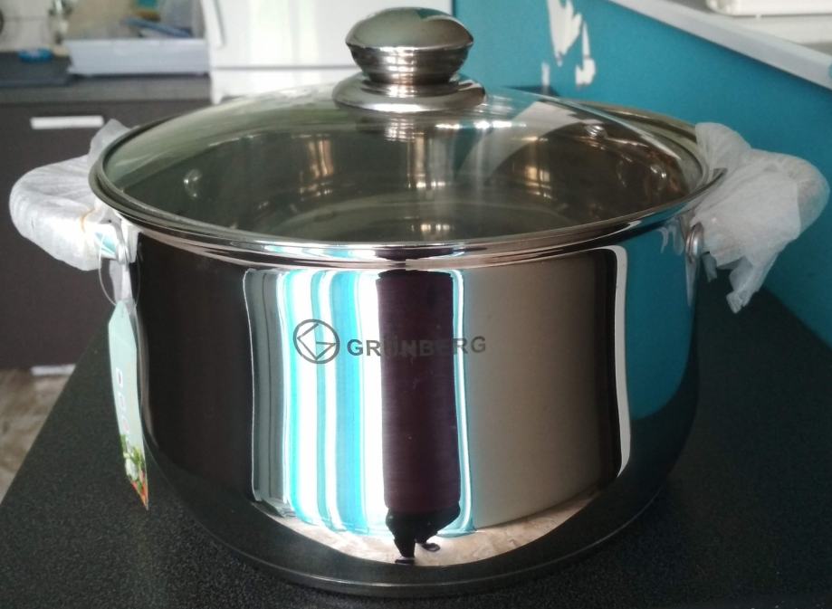 Prodaje se novi INOX LONAC GRUNBERG 6l 25,5cm sa staklenim poklopcem.