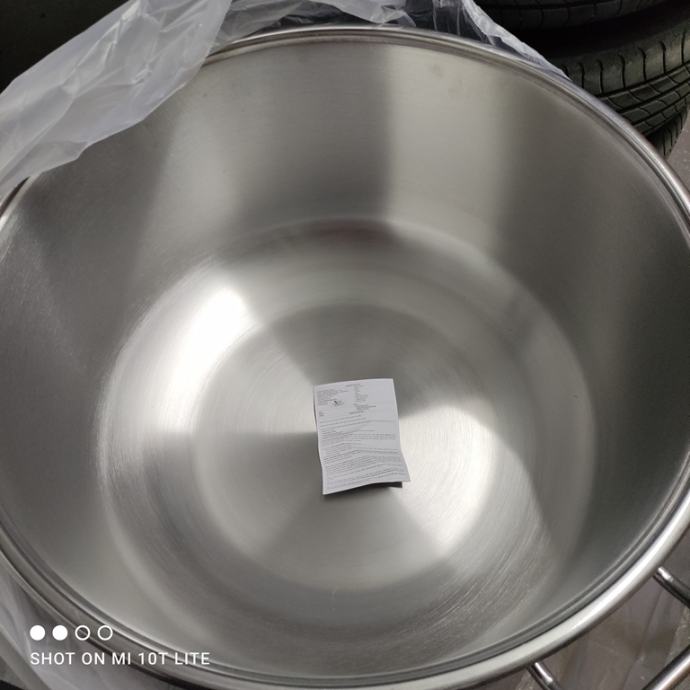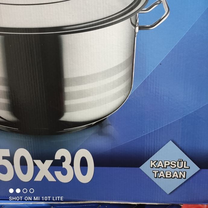 Prodajem novi nekorišteni inox lonac, sa poklopcem zapremine 54 litara. Dimenzije visina 30 cm, promjer 50 cm. Lonac je napravljen od kvalitetnog Cr-Ni nehrđajućeg čelika (inox). Super-termo dno, višestruko podebljano debljine 10 mm. Moguće korištenje na svim izvorima grijanja. Svi certifikati za korištenje u prehrani. Pogodan za izradu mješalice za meso, i slično.