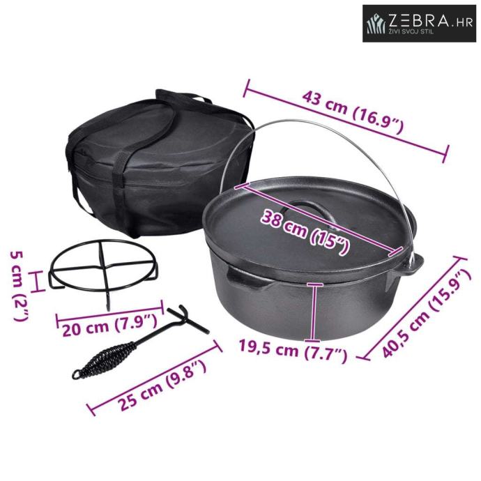 Ovaj lonac za kuhanje na otvorenom kapaciteta 11,3 l idealan je za kuhanje, pečenje i prženje. Koristan je na kampiranjima, piknicima i drugim izletima u prirodu.