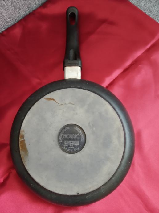 Studentska tava Nordic ,made in Italy,sa neprijanjajućim premazom,promjera 25 cm,dubine 5 cm,ukupne duljine 43,5 cm,težine 765 gr,ipak nije za indukciju,korištena