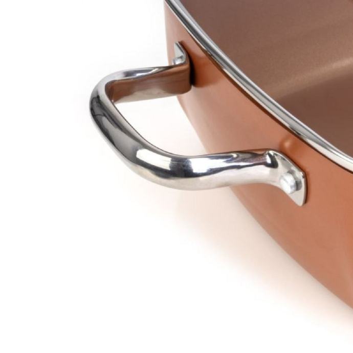 Njegov materijal je bakrena keramička legura, koja je bez ogrebotina, a aluminijski prsten na dnu pomaže u idealnoj raspodjeli topline.