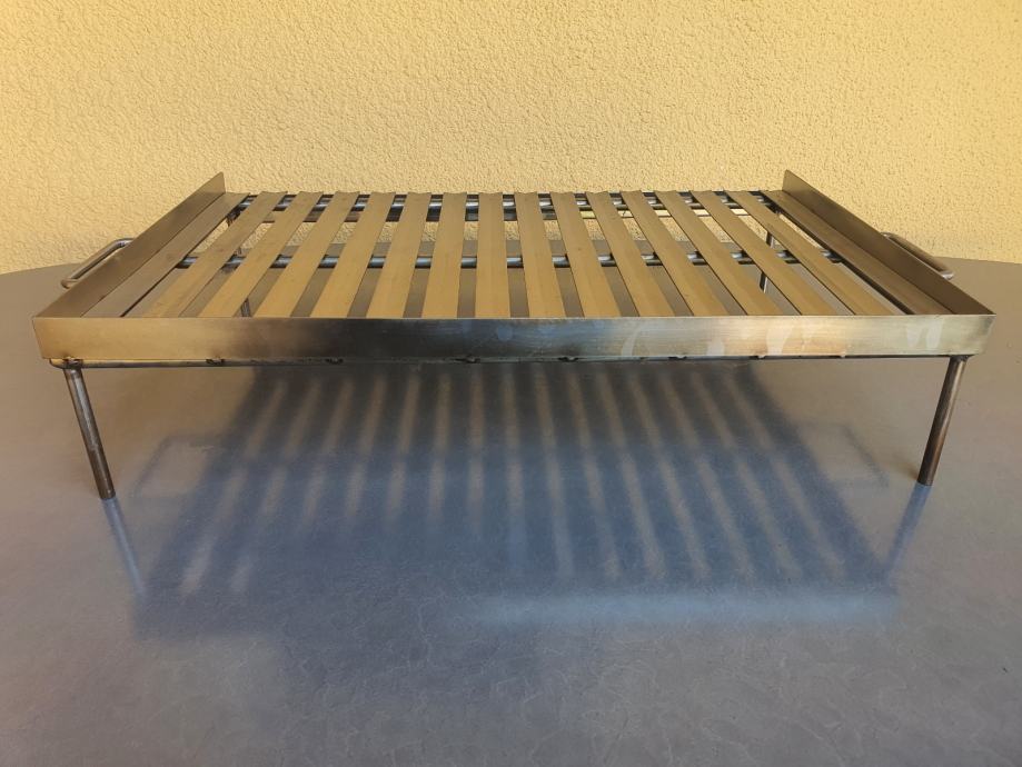 Prodajem inox rešetku za roštilj dimenzija 60x40x12cm. Izrađena je od nehrđajućeg čelika, s praktičnim ručkama sa strane i nogicama koje je drže podignutu. Ispod rešetke nalazi se posuda za skupljanje masnoće. Solidne je i čvrste konstrukcije.