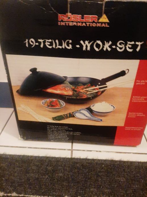 Prodajem Rosler 19-dijelni set za wok, sadrži sve za pripremu hrane (wok tava s poklopcem, zdjela za pripremu umaka, štapići, razne kuhače i sl.). Novo i nekorišteno.