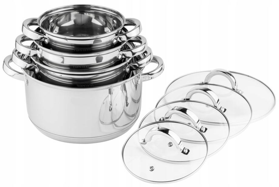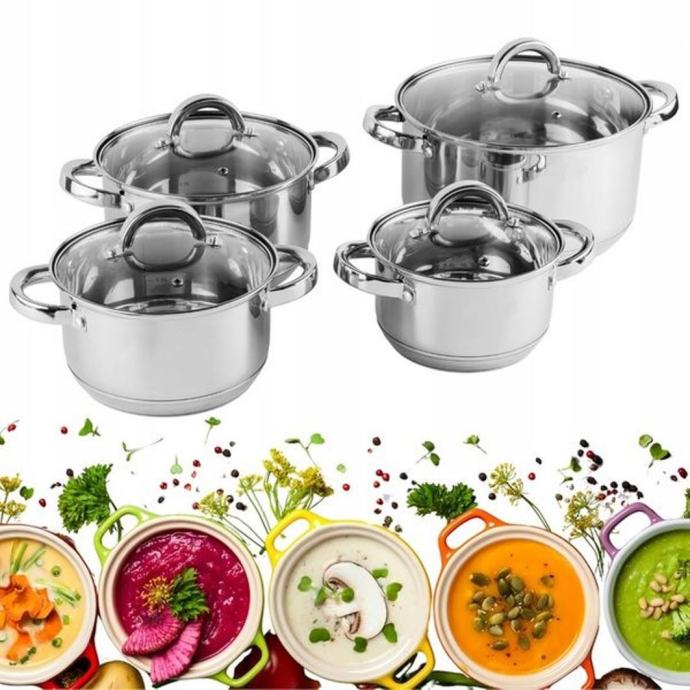 ✿ U setu se nalazi 4 lonca s višeslojnim indukcijskim dnom i 4 poklopca od kaljenog stakla, novo i zapakirano.