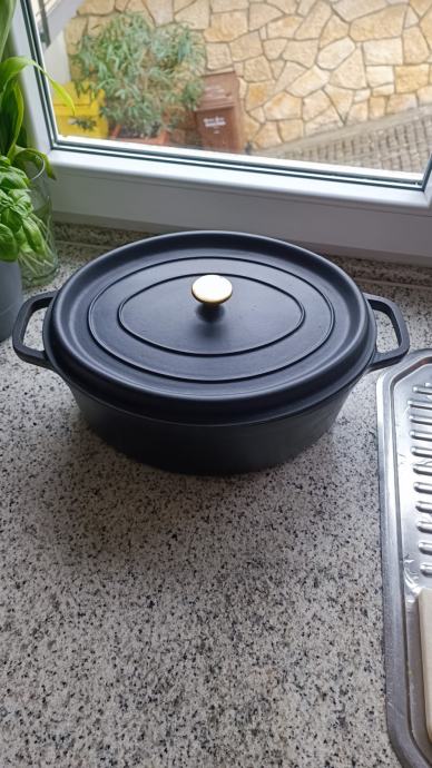 Emajlirana posuda od lijevanog željeza, vrlo izdržljiva, otporna na koroziju s postojanim bojama, otporna na strugotine, s izvrsnom toplinskom vodljivošću