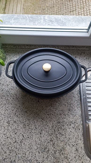 Emajlirana unutarnja površina je mat crna i osigurat će da sve što kuhate u njoj bude ukusno i delikatno. Zatvorena cirkulacija i male izbočine na donjoj strani poklopca stvaraju idealne uvjete za lagano kuhanje i pirjanje.