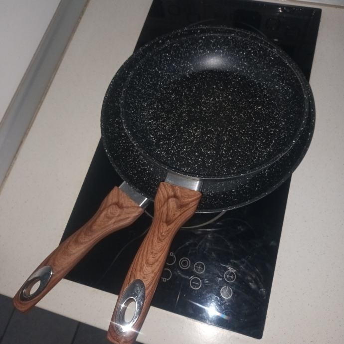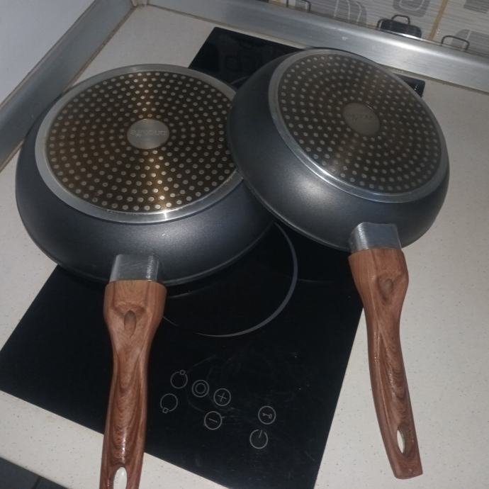 Prodajem 2 tave od 24 i 28 cm, presvucene slojem protov ljepljenja. Pogodno za sve vrste izvora topline pa i indukcije. Obje 20e. 0981955600