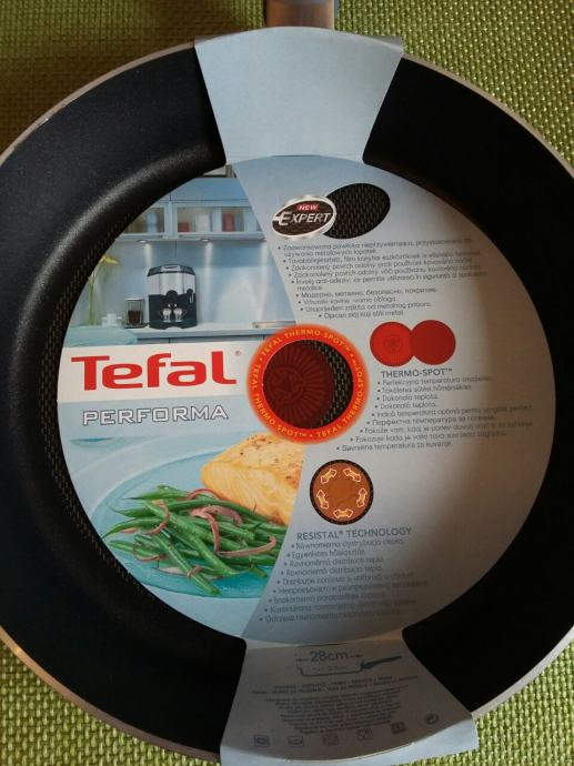Nova, zapakirana tefal performa tava, 28cm promjer, boja plava.