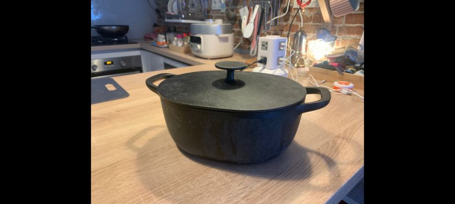 Vrlo malo korišteno. Detaljniji opis: https://www.ikea.com/hr/hr/p/vardagen-posuda-s-poklopcem-emajlirano-lijevano-zeljezo-mat-crna-90560676/