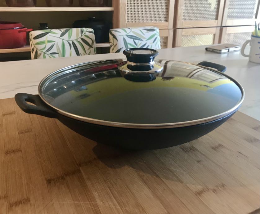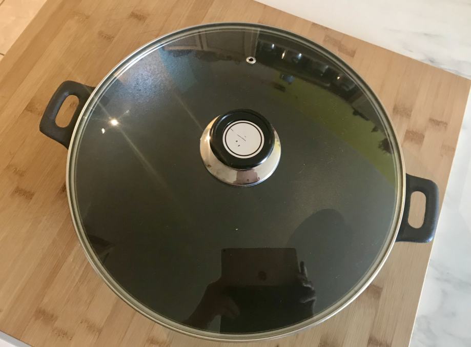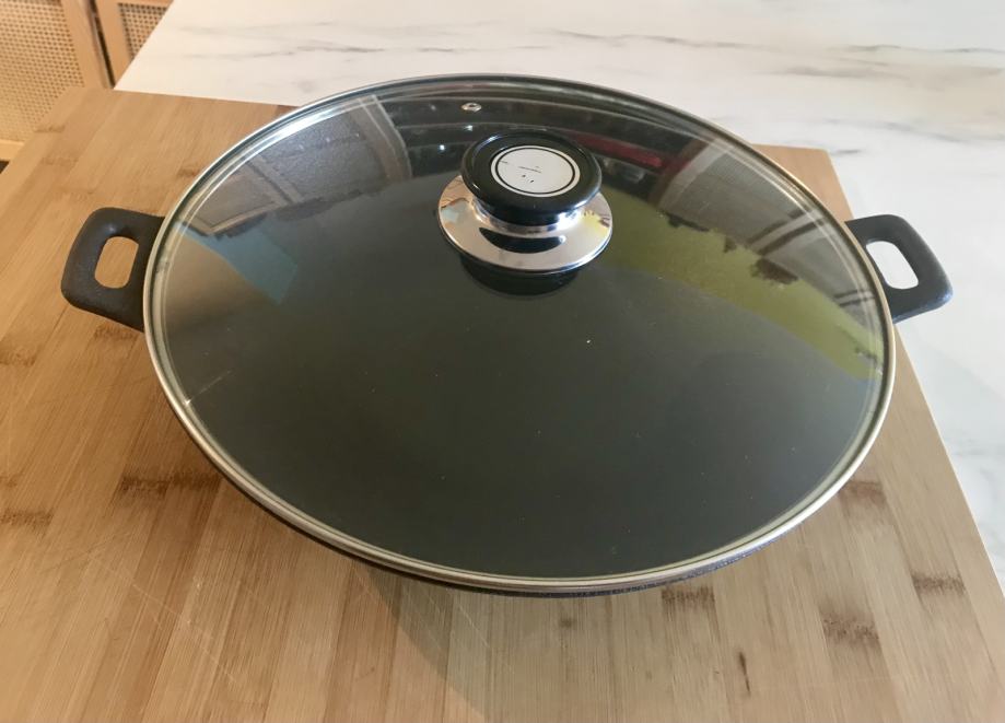 promjer bez ručki 30 cm, a sa ručkama širina 37 cm. dno 12 cm, a visina 9 cm.