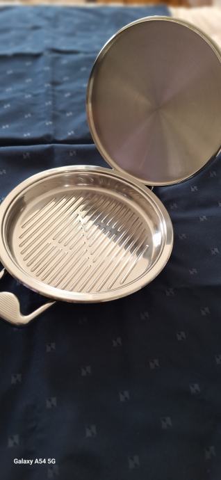 Gotovo nova Zepter grill tava promjera 26 cm! Tava u kojoj možete peći meso, ribu, grilati povrće ali i peći pizzu i burek na štednjaku bez da palite pećnicu! Uz kupnju tave brusač za noževe GRATIS ! Tava je korištena doslovno par puta! Razlog prodaje: imam dvije jednake! Doživotno jamstvo!