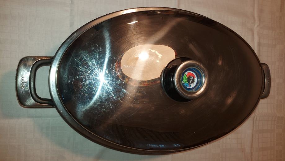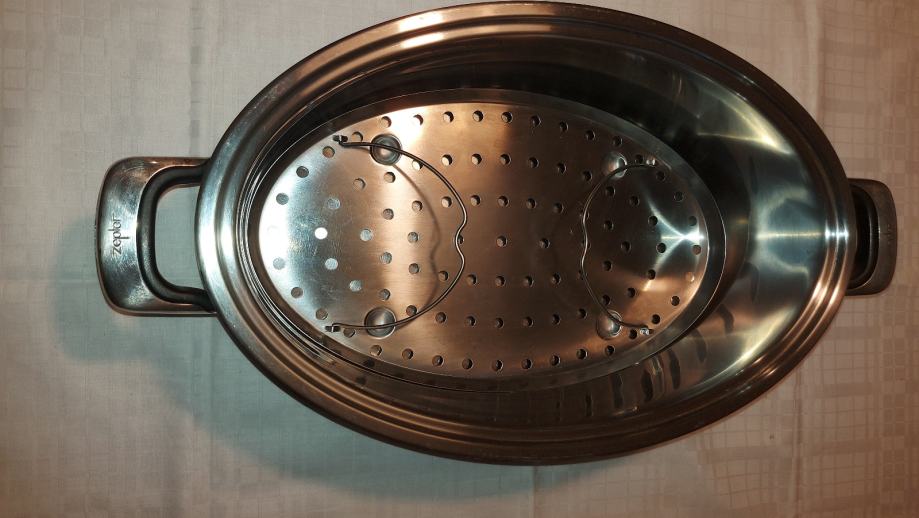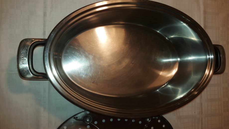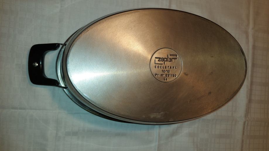 Zepter ovalni lonac nije za indukciju, malo korišten. Dimenzije unutarnje; dužina 36 cm, širina 21,5 cm i visina 10,5 cm.