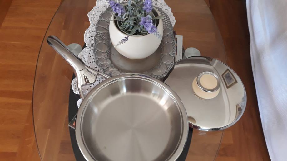Prodajem Zepter višenamjensku tavu promjera 24 cm sa poklopcem, nova. Koristi sve izvore topline uključujući indukciju.
