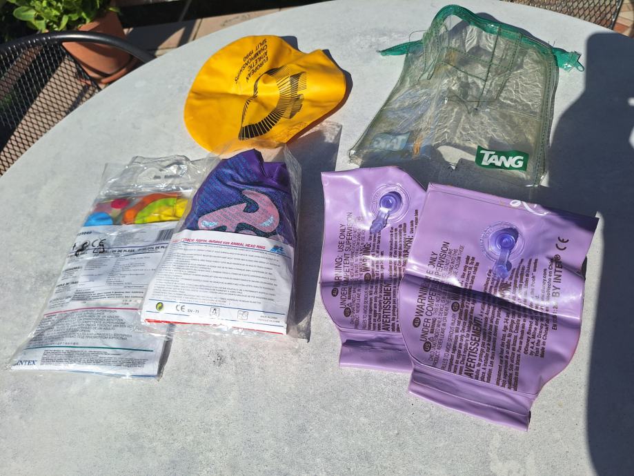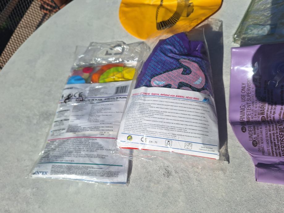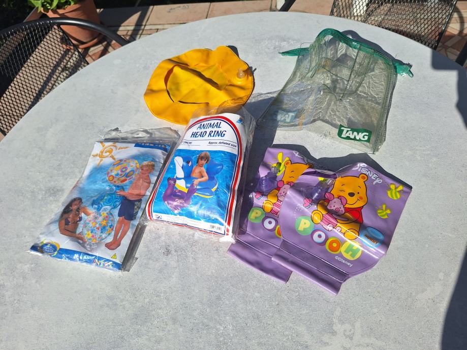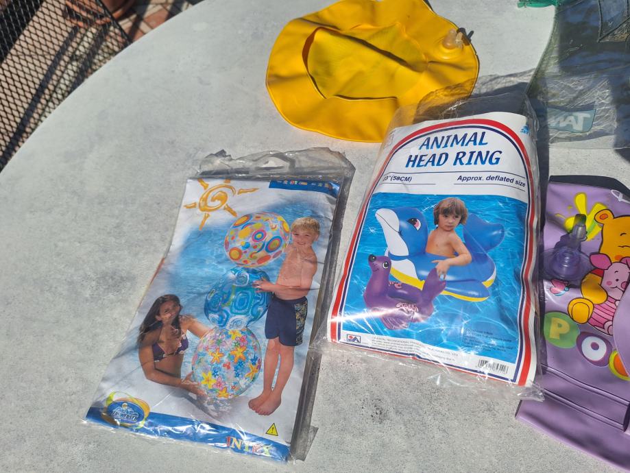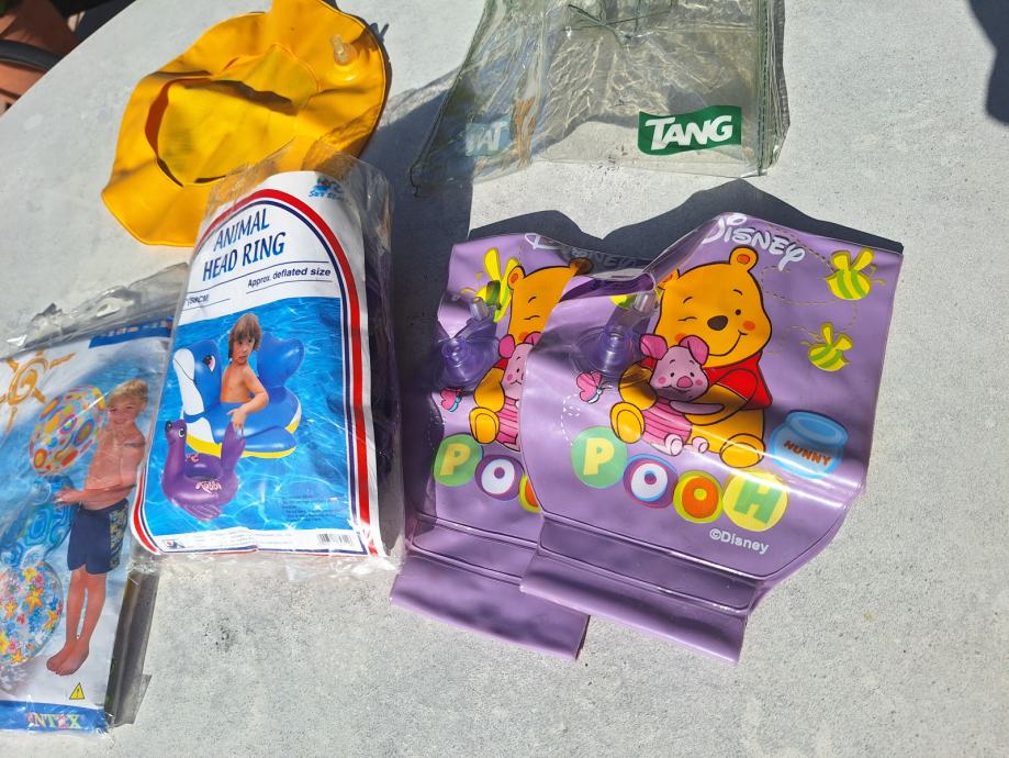 Prodajem potpuno novi LOT-dvije lopte na napuhavanje, pojas i rukavice za plivanje, frizbi na napuhavanje