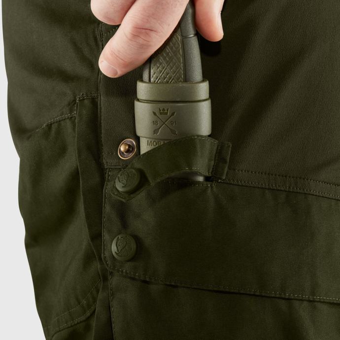 Izdržljive hlače uobičajenog kroja s unaprijed oblikovanim koljenima – Greenland Trail Trousers M izrađene su u G-1000 Eco i ojačane dvostrukim slojem tkanine na stražnjoj strani i koljenima. Svestrane i jednostavne, ove hlače savršene su za svakodnevni život na otvorenom, kao i za urbana okruženja. Imaju dva džepa za ruke i jedan džep za nož, otvore za štitnike za koljena (dodatak) i podešavanja na krajevima nogu.