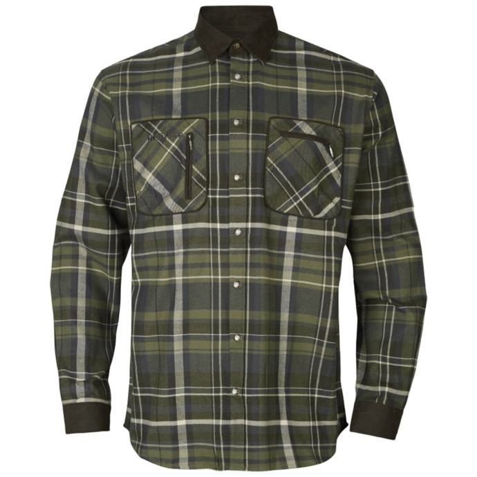 Lovačka košulja Härkila Pajala (Maslinasto karirano) izrađena je od robusnog, mekanog pamučnog flanela i posebno je udobna za nošenje jer je prozračna. Na krajevima ovratnika i rukava korištena su robusna ojačanja od mikrotilop kože . Ovo obećava da će košulju učiniti užitkom nositi dugo vremena.