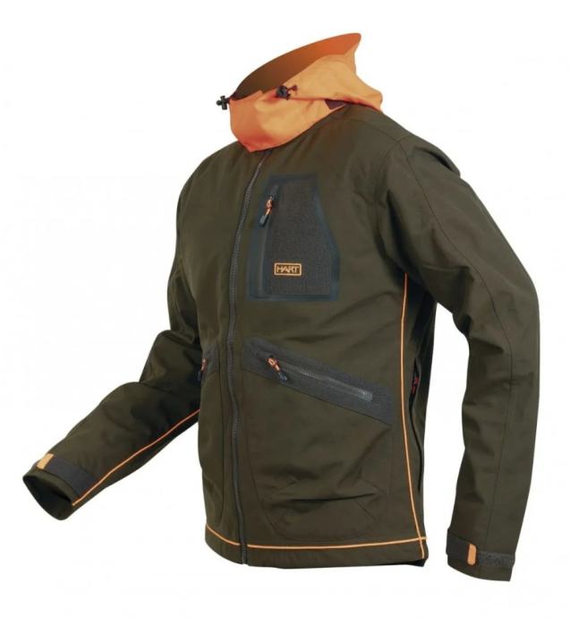 Snažna i lagana jakna od vodonepropusnog materijala namijenjena za aktivni lov. Jakna je izrađena od izdržljive tkanine sa 2 velika prednja džepa sa patentnim zatvaračima, vodootpornim džepom na prsima sa patentnim zatvaračem, te džepom za divljač sa zatvaračem na stražnjoj strani. Narančasta kapuljača je sakrivena u ovratnik. Visoka vodootpornost (8000 mm)i prozračnost (5000 gr / m2).