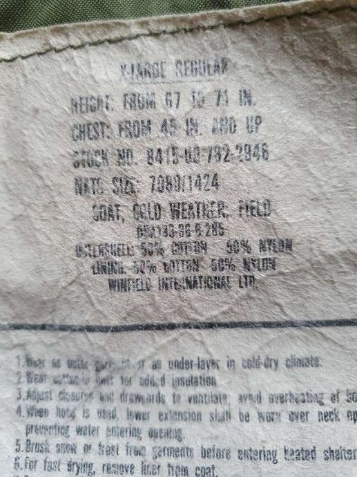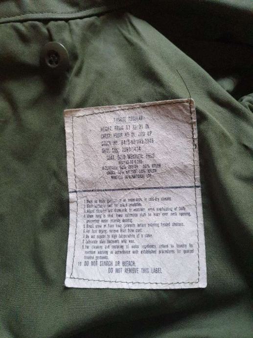 Orginalna vojna jakna vijetnamka Winfield Ind iz 1986g, kupljena davno u Njemačkoj. Izuzetno kvalitetan i čvrst materijal nepoderiv tri klase iznad ovih civilnih verzija Alpha jakni. Vel XL Regular. Iako stara 40 godina jakna je kao nova ni malo izbljedila i bez oštečenja. U kragni je kapuljača, Jakna dakako dolazi sa zimskim termo uloškom. Šaljem pošta, tisak, bus nakon vidljive uplate ili osobno preuzimanje, pouzečem ne šaljem, cijena 150€. Lokacija Karlovac tel 0915708938.