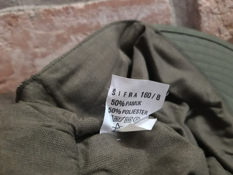 Lovačka kapa vel. 55 vojna silterica, dupli materijal, potpuno je nova, materijal pamuk i polister po 50%. Kapa je originalna HV vojna, vrlo kvalitetna, HV iz 1993. godine, na nju se postavljao metalni grb. Nije duboka verzija nego plici model. Nema nikakav produžetak U zadnjem dijelu u unutrašnjosti ima gumu koja kapu drži stabilnom na glavi. Cijena 10 eura. Mob 091 444 4281