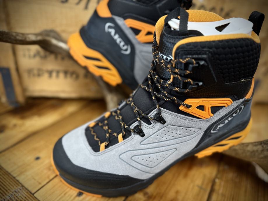 Aku Reactive GTX planinarske cipele imaju gornjište izrađeno od brušene kože debljine 1,6 mm sa umecima od tkanine AIR 8000®. Asimetrično vezanje osigurava precizno prilagođavanje stopalu.