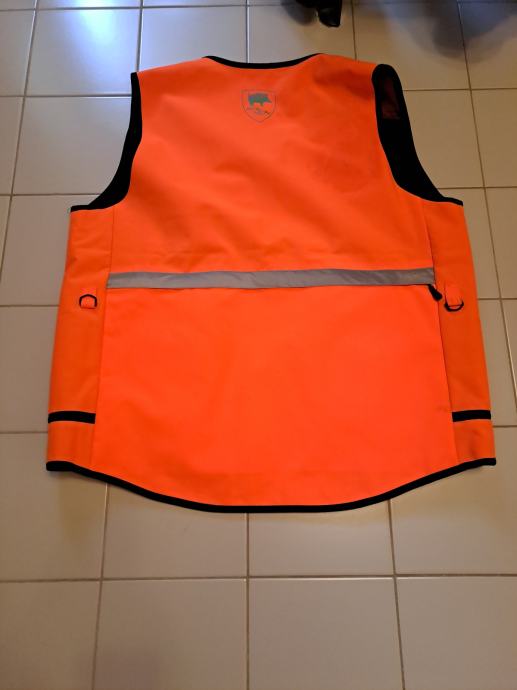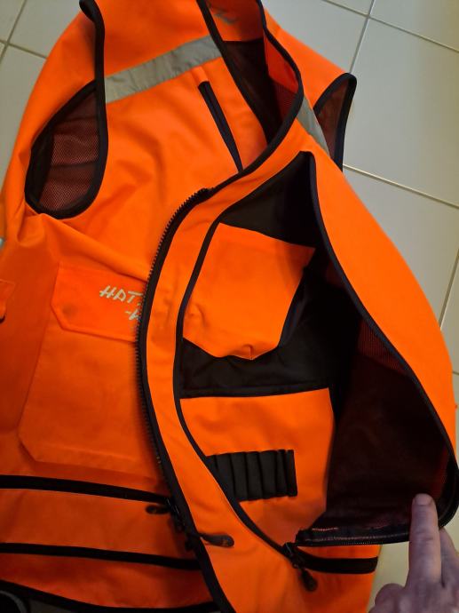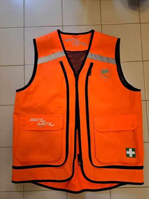 Original cijena 149,90 e. Velicina XL vrlo vidljiv i izuzetno funkcionalan prsluk. Robusni vanjski materijal opremljen je vodootpornom, ali prozračnom HUNTEX membranom za zaštitu od vlage. Prsluk je podstavljen dijamantnom mrežom koja osigurava optimalnu cirkulaciju zraka.Na stražnjoj strani nalazi se prostrani džep za lov s horizontalnim patentnim zatvaračem za pohranu povodca za pse, jastuka za sjedenje itd.Veliki, potpuno otvarajući Napoleon džepovi s patentnim zatvaračem opremljeni su brojnim funkcionalnim značajkama: s lijeve strane, držač patrona za streljivo, a iznad njega, na prsima, džep za uređaj za praćenje pasa s izlazom za antenu. Desni džep s patentnim zatvaračem ima unutarnji džep za mobitel.Prsluk također ima prostrane prednje džepove s preklopom, lijevi s križnom oznakom za pribor za prvu pomoć.Ključevi ili male dragocjenosti mogu se sigurno pohraniti u unutarnjem džepu "Key Safe". Dodatnu vidljivost osiguravaju reflektirajuće trake na ramenima i leđima te reflektirajući Hatz-Watz logotipi na naramenici i vratu. D-prstenovi s obje strane omogućuju pričvršćivanje povodca itd. Vodootpornost 5000 mm, prozračnost 8000 g/m²/24h. 100% poliester.