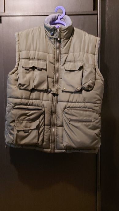 Na prodaju skoro nenošen topli prsluk s puno đepova, dva lica,jedan nepromočivi i od flisa unutra